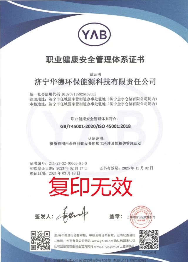 職業(yè)健康安全管理體系證書...