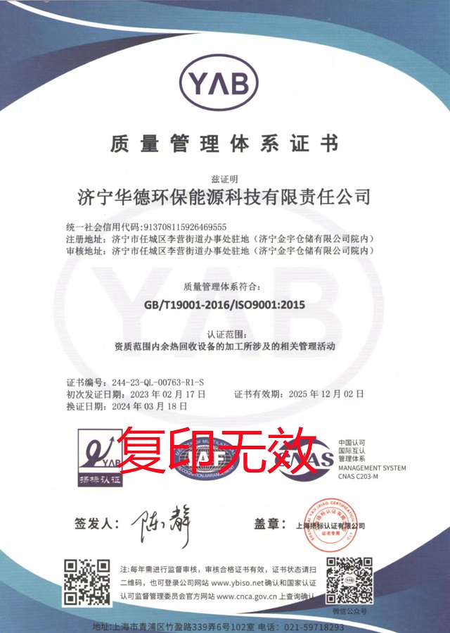 質(zhì)量管理體系證書...